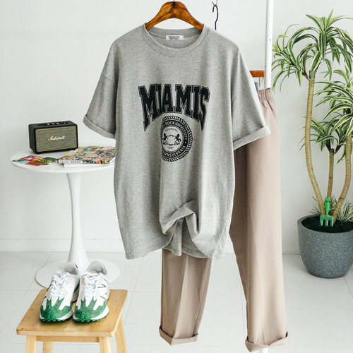 제이엘핏 / 남녀공용 오버핏 반팔 레터링 마이애미 박스티