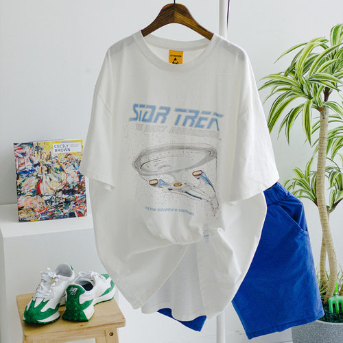제이엘핏 / 남녀공용 프린팅 반팔티 오버핏 스타트렉 박스티