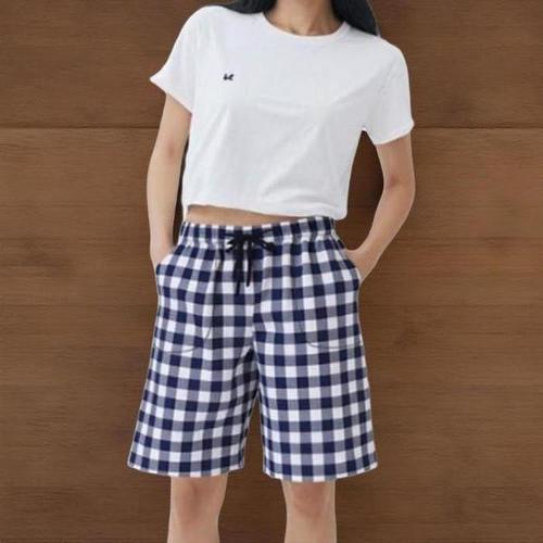 [다잇템_패션]커플용 시즌리스 고무줄 격자 반바지