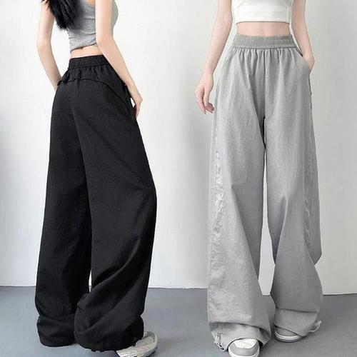 더블 2025 가을 여성 신상 간절기 스판 허리 밴딩 여자 배기 면 고무줄 편한 롱 팬츠 블랙 검정 회색 그레이 베기 9부 긴 바지