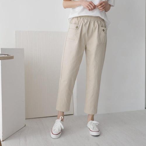 [다잇템]여자 편한 SS 일상룩 배기팬츠 단추 면바지_4