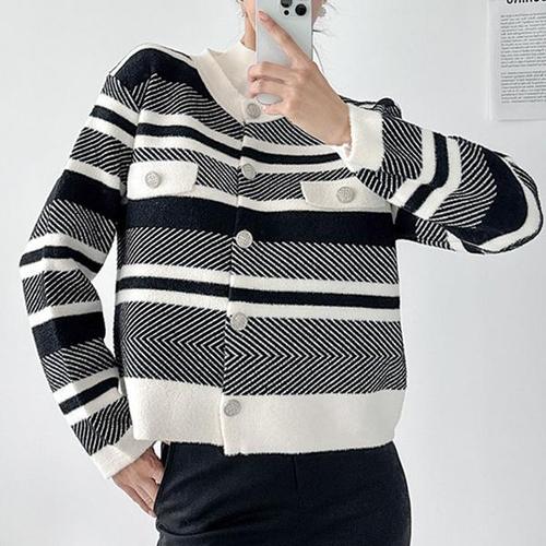 [에이치스타일](OT)25-834스트라이프트위드가디건 가을 여성 아우터