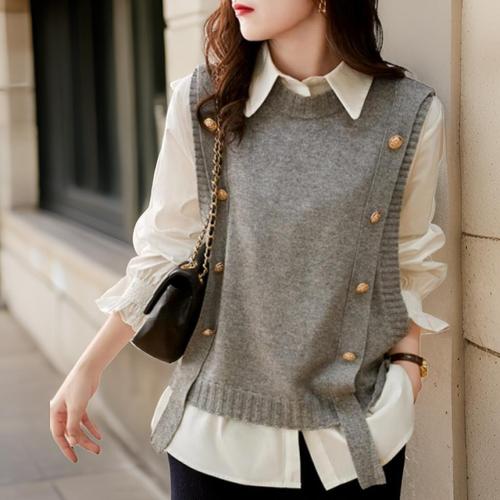 [옷자락] 여자 블랙 금장 버튼 그레이 니트베스트 조끼