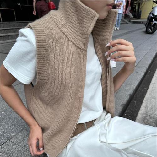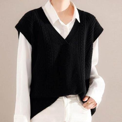 ZAJA여성 니트 베스트 조끼 브이넥 와이드 추동