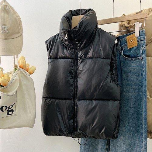 크롭 패딩 조끼 누빔 케이프 중년 봄 겨울 캐주얼 숏 따뜻한