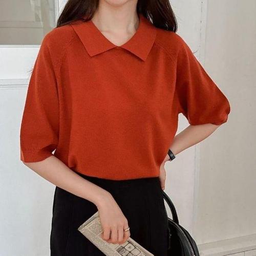 [신상오픈런]여성용 5부 카라넥 울 니트 반팔 티셔츠