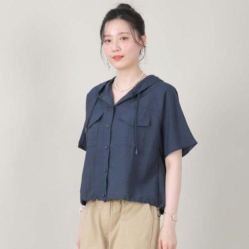 [애비뉴투지]엄마옷 후드 플랩 포켓 주머니 단추 허리끈 여성 여름 5부 반팔 크랍 숏 티셔츠 A07554
