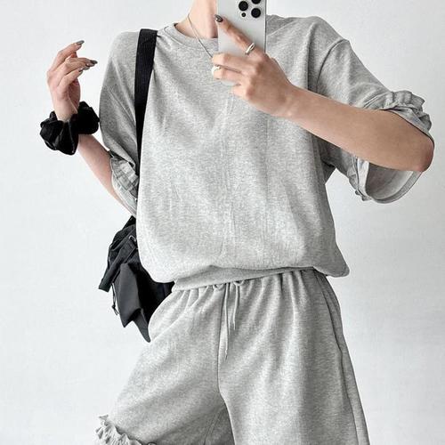 여자 여름 맨투맨 프릴반팔티 5부 반바지 세트