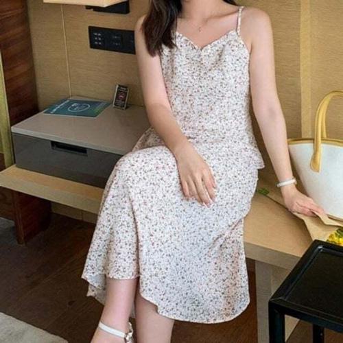 [모노무드]모노무드 STD 여자 쉬폰 플라워 트렌드 끈나시 롱원피스 데일리 여