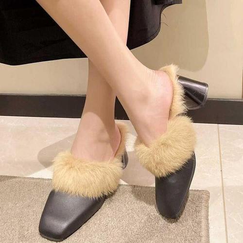 [셀러허브_여성트랜드패션]ONM 연말 모임 퍼 안감 패션 구두 스퀘어 토 펌프스
