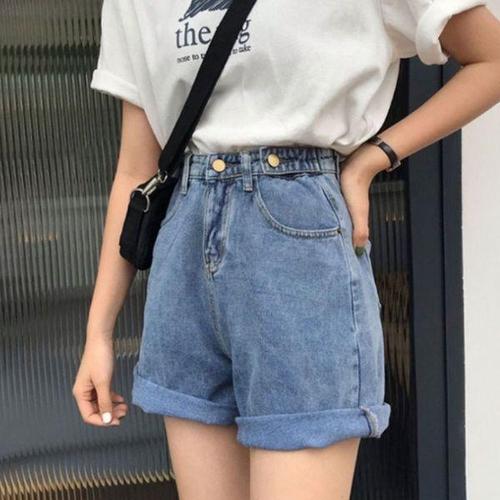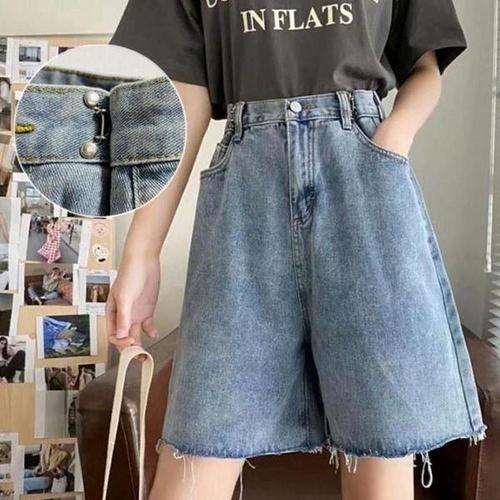[옷자락]여성 연청 버뮤다 데님 반바지 여름용 버튼 청바지