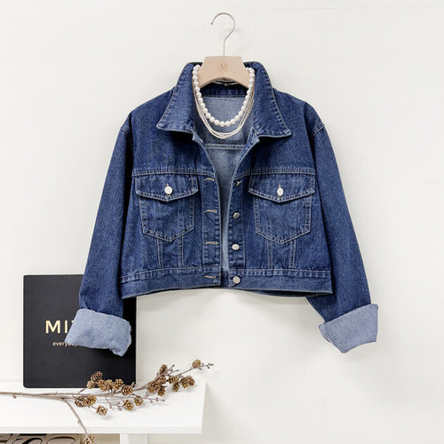 [옷자락]여성 가을 외투 연청 페이크포켓 카라 크롭 청자켓