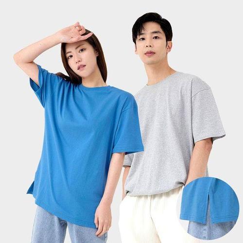[엘라모]무지 옆트임 오버핏 반팔 티셔츠 남녀공용 빅사이즈 XS~XL
