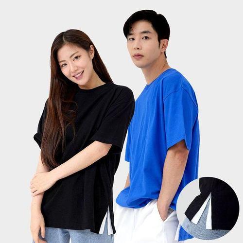 [엘라모]무지 옆트임 레이어드 오버핏 반팔 티셔츠 남녀공용 빅사이즈 XS~XL
