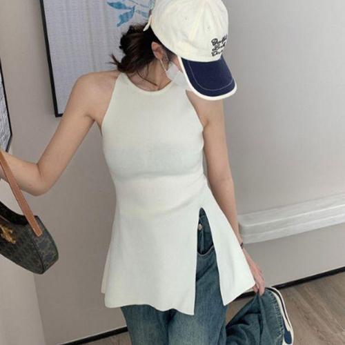 빅사이즈 여성의류 레이어드 20수 이너 롱 나시 민소매 옆트임 티셔츠 오버핏 루즈 봄 여름 사계절 66-110 size