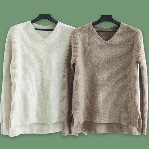 [셀러허브_여성트랜드패션]여성 브이넥 골지 티 기본 X 가을 트임 니트 옆
