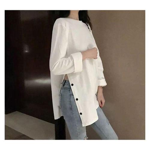 [에이치플러스몰]여성롱티셔츠 1P 여자 옆트임 단추 예쁜한 레이어드