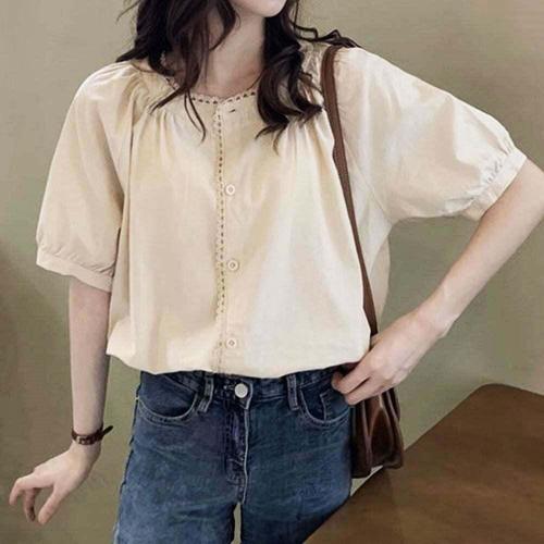 [모노무드]모노무드 여성 블라우스 여름셔츠 봄 예쁜 여자 화이트 블라우스 반팔