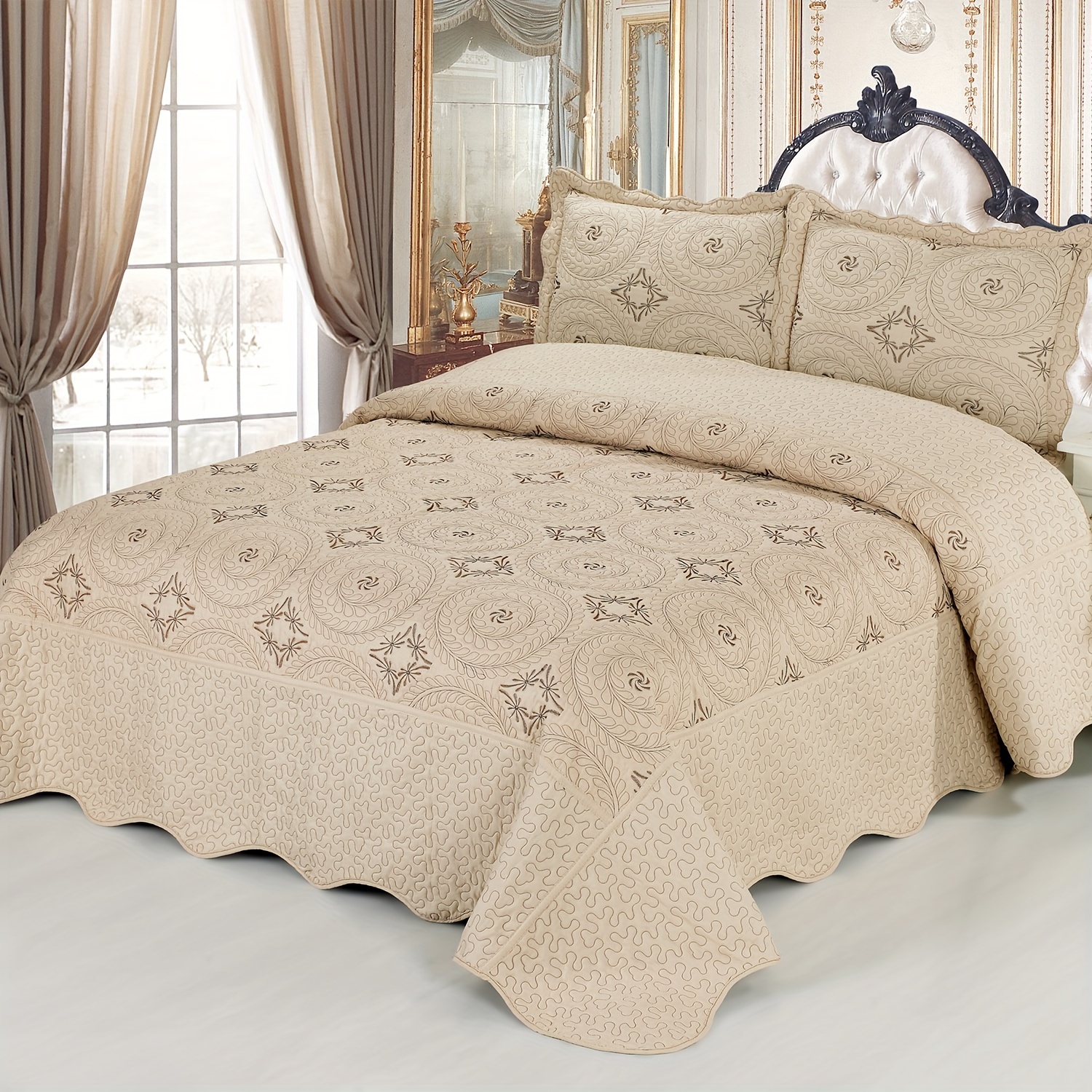 TEMU 자수 퀼트 침구 세트, 초경량 더블 3pcs 플로럴 침대 커버/베드 커버 (1*베드 커버/베드 커버 + 2*베갯잇, 충전재 없음), 부드럽고 통기성 좋음, 편안한 침실 기숙사 침구, 침대 커버 세트, 침대커버 세트, 베드스프레드, 베드 커버, 침대스프레드, 침구세트, 이불 커버