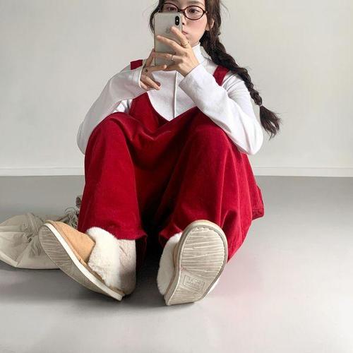 보리맘 융 기모 밍크 털 멜빵 점프수트