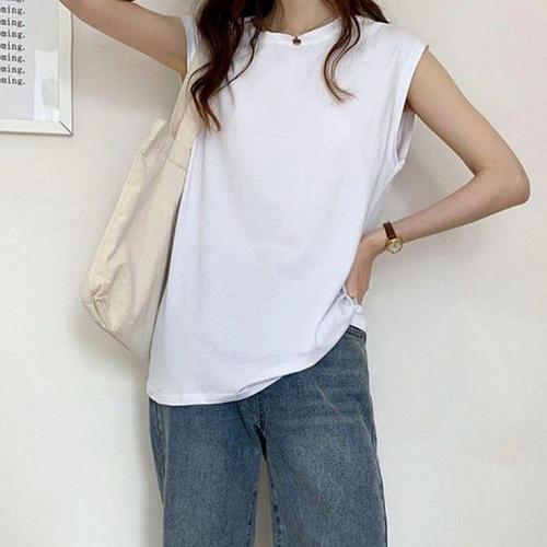 [에이치플러스몰]여성용 여름용 루즈핏 민소매 캐주얼 나시 티셔츠