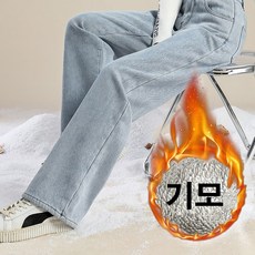 부엉구구 OW0004A 여성 겨울 캐주얼 기모 일자 루즈핏 데님 팬츠
