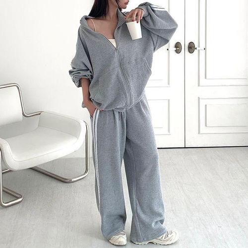 [유야]무지 후드티 일자 바지 트레이닝 세트 츄리닝 -PST0453H- 빅사이즈 루즈핏 여성 가을