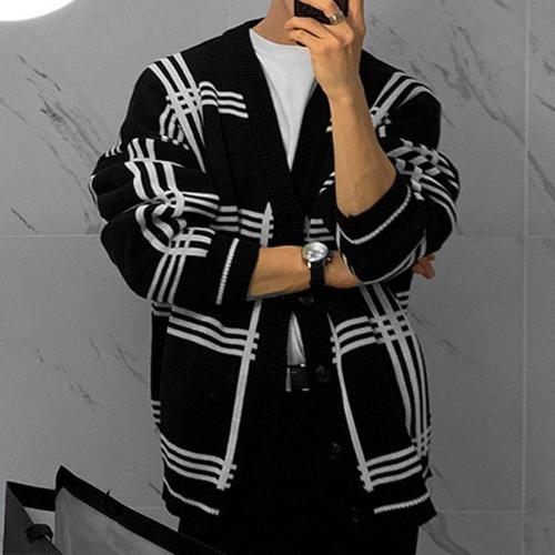 남성용 루즈핏 체크 무늬 단추 가디건 재킷 캐주얼웨어 WFLMFEB
