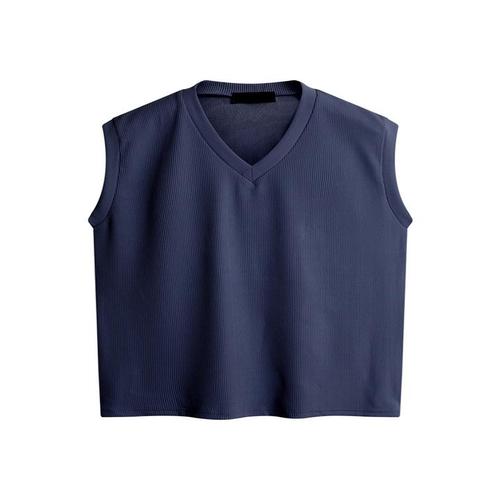 [파파브로]남성 오버핏 골지 브이넥 니트 베스트 SO-VEA-Q055-네이비