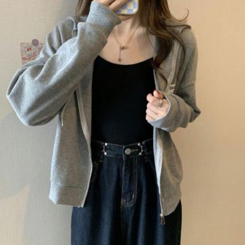 [옷자락] 여성 캐주얼 와플 무지 후드집업 루즈핏