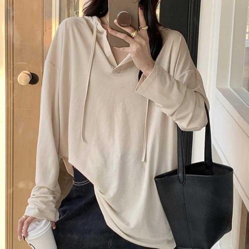 [오너클랜]인기상품 얇은 루즈핏 트임 후드티 긴팔 후드 티셔츠 가을 여성 [WFK6E80_260406]