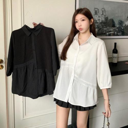 [오너클랜]인기상품 셔츠 블라우스 여성 7부 오버핏 심플 프릴 [WFK5SWN_260405]