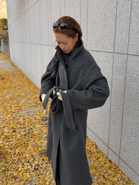 [오스트카카] 캐시미어 하이넥 싱글 롱 코트 차콜