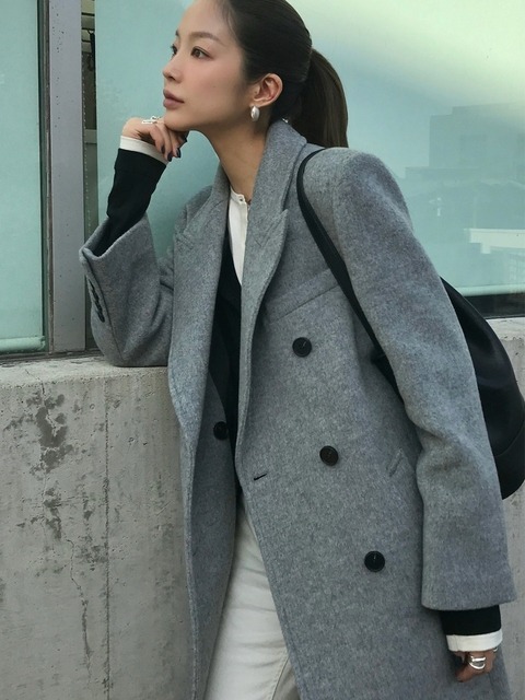 [오스트카카] 캐시미어 피크드 칼라 더블 롱코트