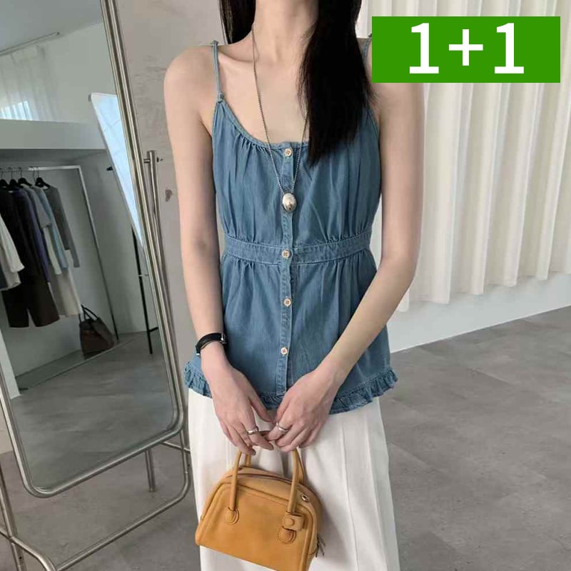 1+1 데님 청 나시 민소매 프릴 슬리브리스