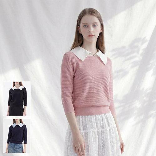 [로코엘라]마리 셔츠 카라 레이어드 오프숄더 니트.