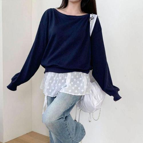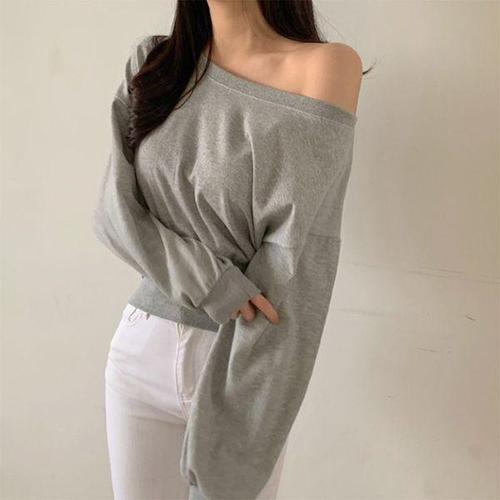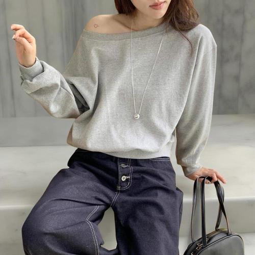 [옷자락] 여성 캐주얼 보트넥 코튼 루즈핏 맨투맨티