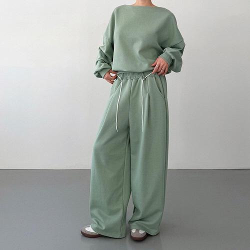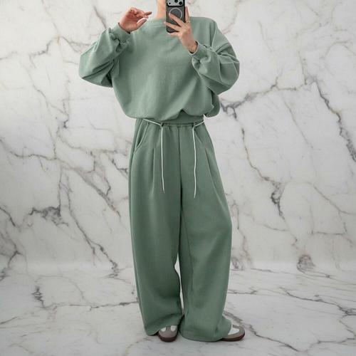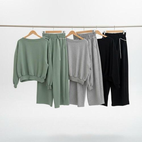 [옷자락] 여성 오버사이즈 보트넥 맨투맨 세트 끈밴딩 와이드핏