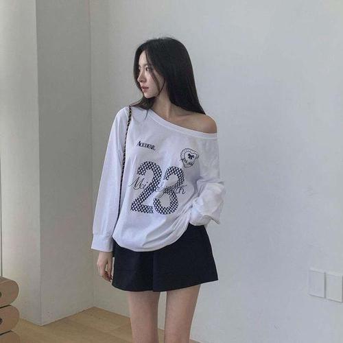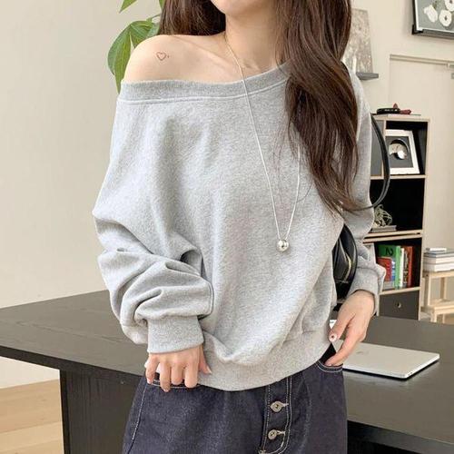 [다잇템]여자 면혼방 박시핏 원오프숄더 클래식 맨투맨