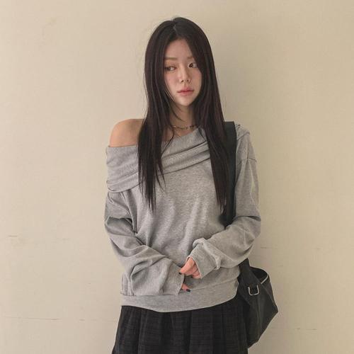 [모어렌][모어렌] 투웨일 루즈핏 오프숄더 맨투맨 [tts0694]