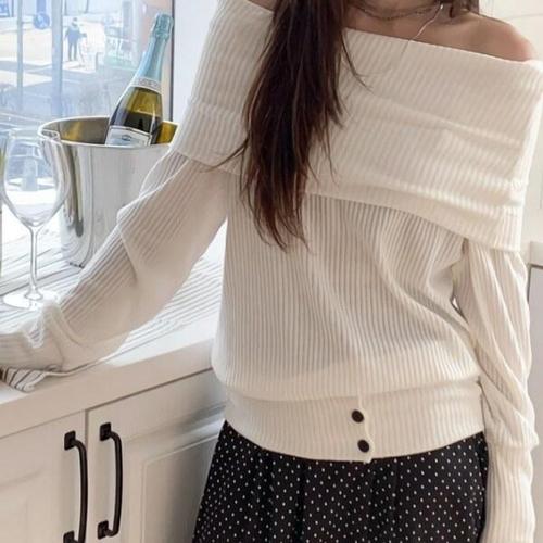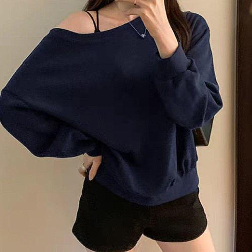 EAMT 가을 캐주얼 여성티셔츠 기본 라운드 오프숄더 맨투맨 싱글 YJ3