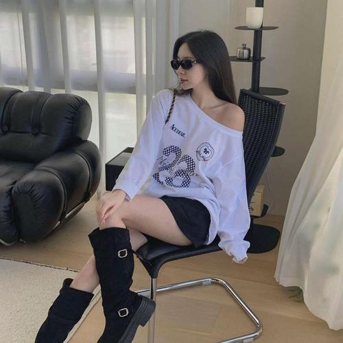 [옷자락]여자 데일리 면혼방 원오프숄더 오버핏 맨투맨