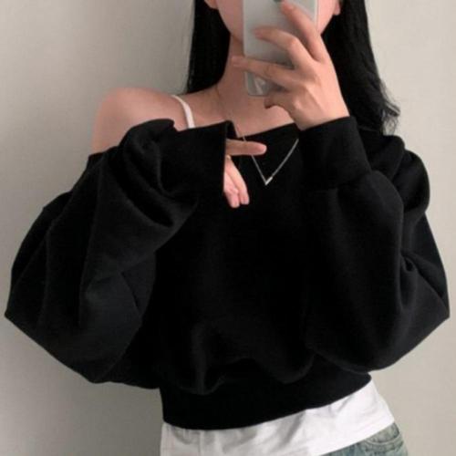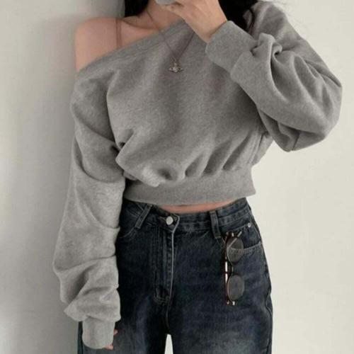 [오너클랜]인기상품 오프숄더 크롭 맨투맨 언발 긴팔 여성 티셔츠 [WFJTH17_260405]