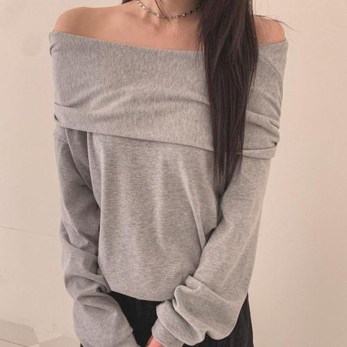 [오너클랜]인기상품 여성 루즈핏 언발 오프숄더 맨투맨 긴팔 티셔츠 [WFKMHGB_260408]