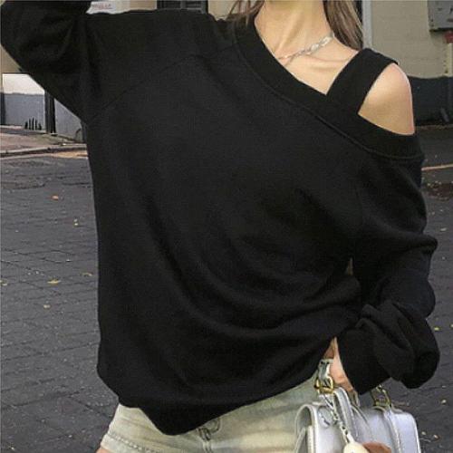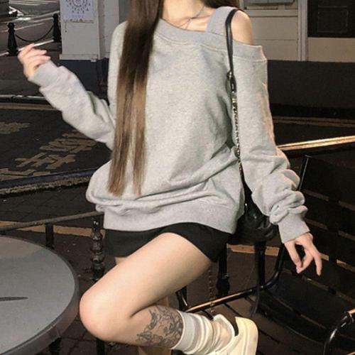 여성 언발 어깨트임 한쪽 오프숄더 맨투맨 루즈핏 여리여리 긴팔