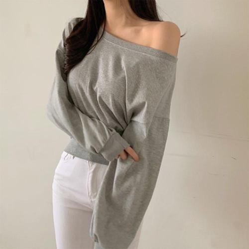 [옷자락] 여자 데일리 면혼방 원오프숄더 오버핏 맨투맨
