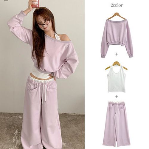더핑크 / 죠힝 홀터넥나시+오프숄더 맨투맨+트레이닝팬츠 set