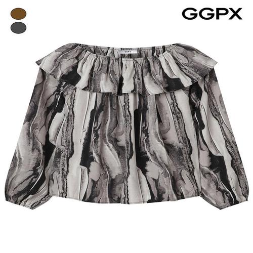 [GGPX]러플 오프숄더 나염 블라우스 (GP9SH032F)