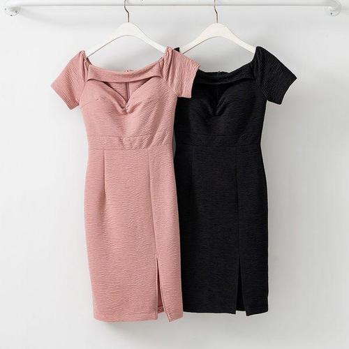 여성 오프숄더 슬림핏 사이드 미니 드레스