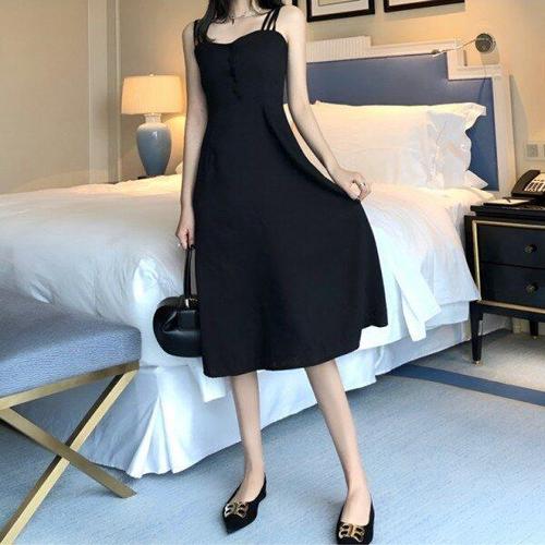 [모노무드]LMO 여리여리 블랙컬러 오픈숄더 스트링맥시드레스 클래식